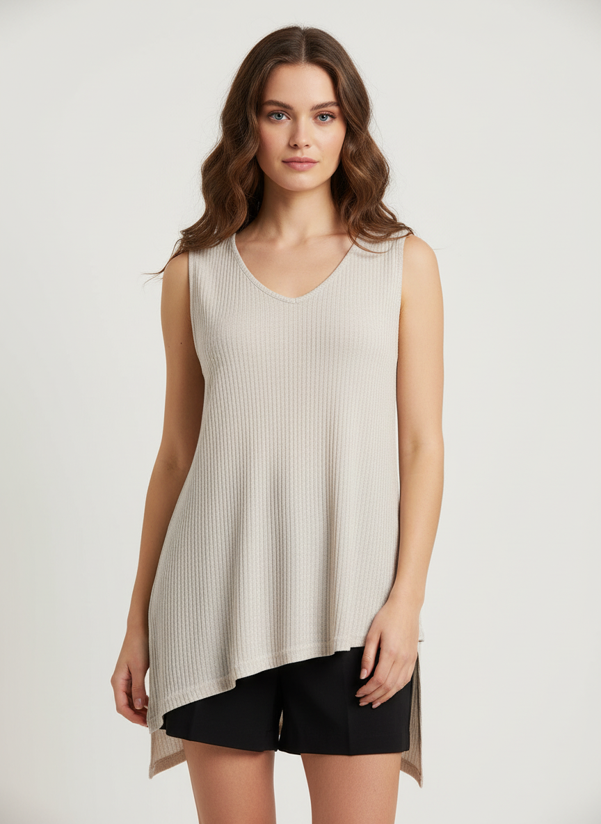 Γυναικεία Αμάνικη Μπλούζα σε Μπεζ – Viscose Blend με Ασύμμετρο Κόψιμο