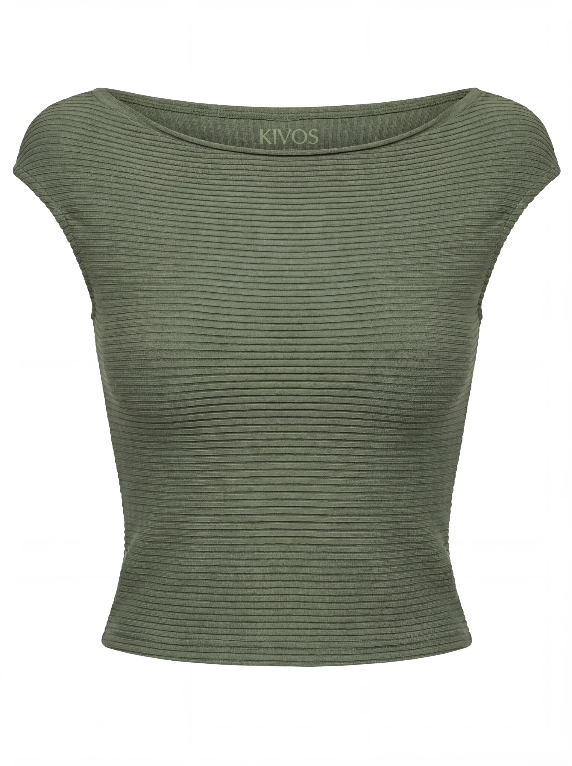 Γυναικείο Λαδί Ribbed Αμάνικο Top με Ίσια Λαιμόκοψη – Minimal & Κομψό
